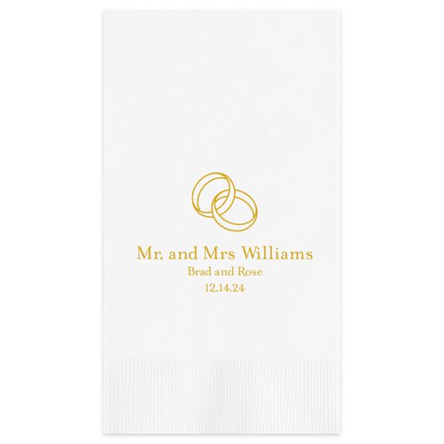 Our Wedding Guest Towel - Printed makes a great addition to your special event or as a decorative bar accessory. Featuring a choice between several lettering styles, Wedding artwork motifs, paper colors, and ink colors, this item also allows up to three lines of personalization. The ink color is precisely printed onto our sturdy 3-ply paper.